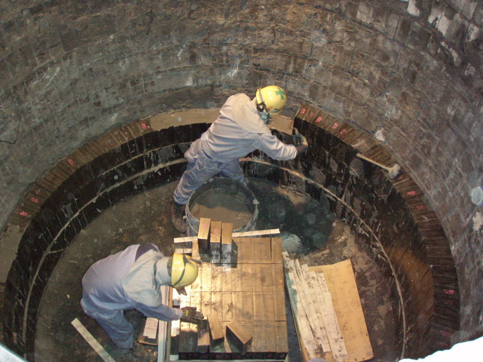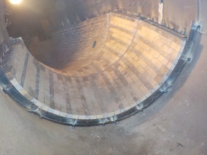 製鋼工場内築炉作業